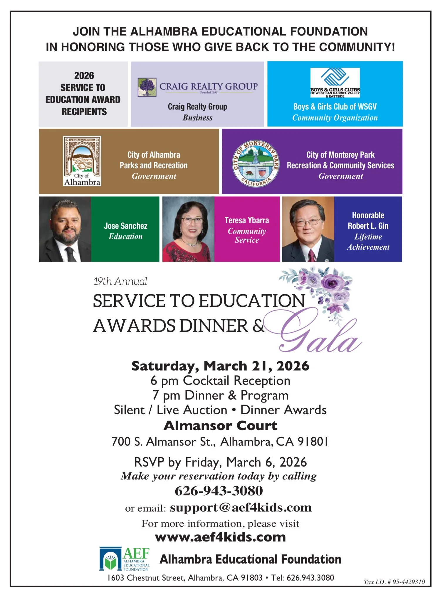 AEF would like to thank the following business, community members and friends for their generous contributions to its 19th Annual Service to Education Awards Dinner & Gala.